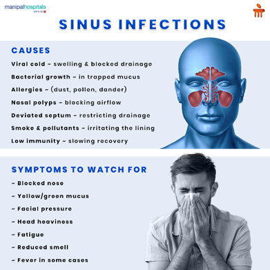 Sinuses work best when air flows smoothly through them. The problem starts when this flow is blocked. The lining inside your nose and sinuses swells, and the natural drainage slows down. Once mucus gets trapped, infection begins.