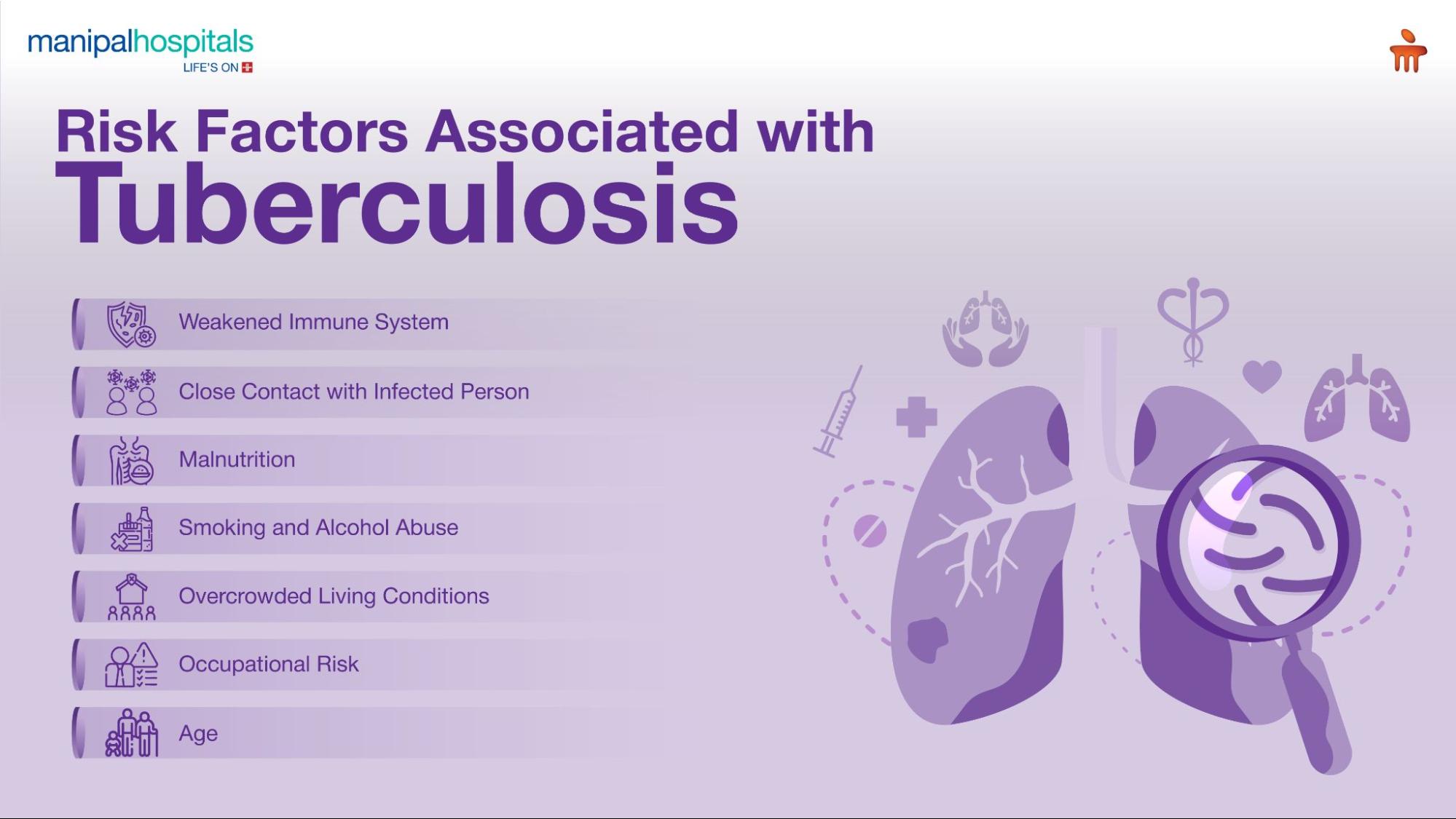 Several factors are responsible for making someone susceptible to developing active Tuberculosis, particularly concerning causes of pulmonary tuberculosis. These weaken the body's defences, allowing dormant bacteria to activate or new infections to progress: