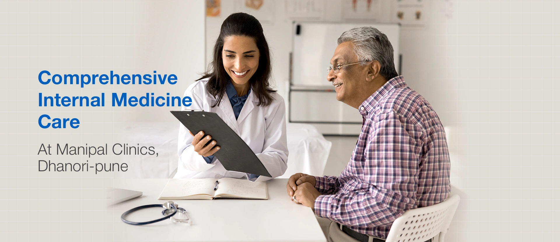 Manipal Hospital Dhanori-Pune, provides expert Internal Medicine services for the prevention, diagnosis, and management of a wide range of medical conditions. Our team of experienced physicians specialises in treating acute and chronic diseases while offering personalised care to ensure optimal health outcomes for patients of all ages.