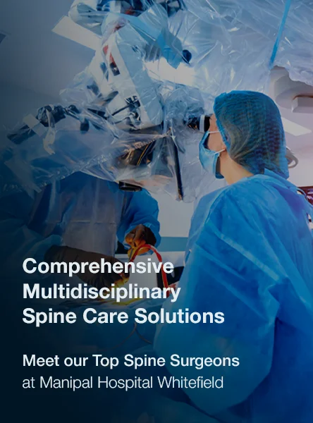 At Manipal Hospital Whitefield, Bangalore, our dedicated Spine Care Centre offers comprehensive diagnosis and treatment for a wide range of spinal conditions. Led by a team of highly skilled specialist spine surgeons in Bangalore, the centre provides the latest advancements in both conservative and surgical care. For issues like herniated discs, scoliosis, and spinal arthritis, our experts might recommend non-surgical options such as medication, physical therapy, or injections as well as surgical interventions – both open and minimally invasive. Our surgeons are equipped with cutting-edge technology to perform minimally invasive and advanced spine surgery.
