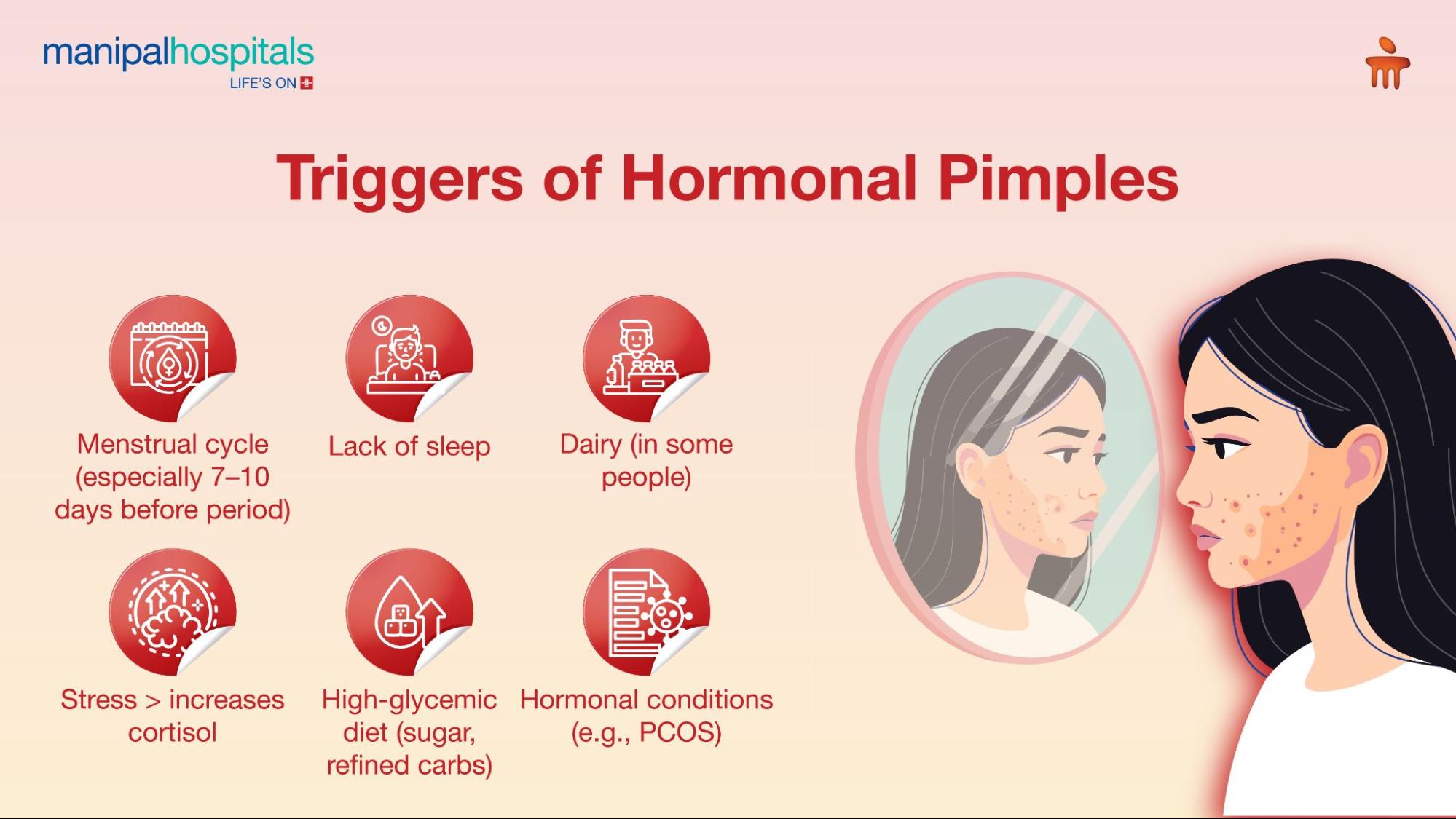 Several physiological factors can trigger hormonal pimples: