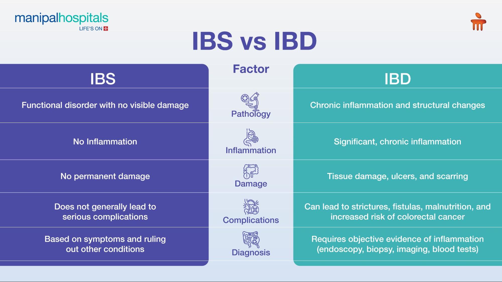 Living with chronic digestive issues can be challenging and often confusing. Two common conditions that frequently get mistaken for one another are Irritable Bowel Syndrome (IBS) and Inflammatory Bowel Disease (IBD). While both affect the gastrointestinal (GI) tract and share overlapping symptoms, they are fundamentally different in their pathology, diagnosis, and long-term implications. Understanding these differences is crucial for effective management and improving the patient’s quality of life. At Manipal Hospitals, our gastroenterologists in Delhi are dedicated to providing accurate diagnosis and personalised treatment plans for both IBS and IBD, helping the patient navigate their path to better gut health.