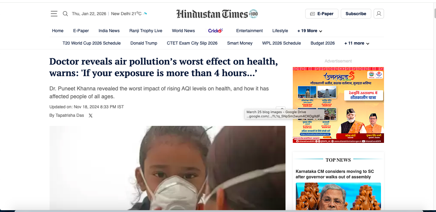 The state of air pollution in Delhi is getting more concerning by the day. According to Central Pollution Control Board, multiple stations of Delhi crossed the ‘severe plus’ category of AQI and neared 500 by Monday morning. The rising AQI levels in Delhi are contributing to several health concerns as well. Air pollution affects every part of the body, and can lead to many chronic illnesses.