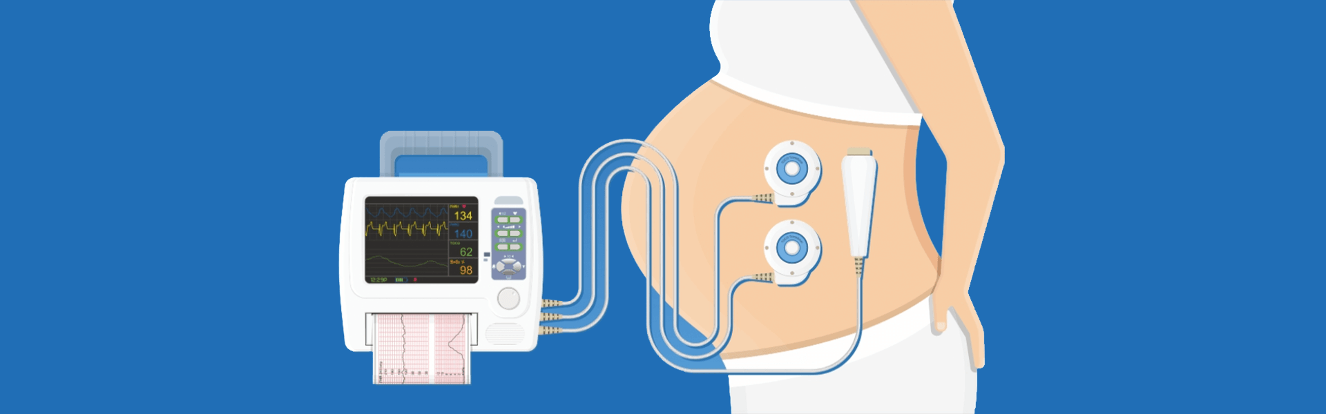 The test is done by tying 2 belts (with sensors) around your belly which detects foetal heart rate and uterine contractions.