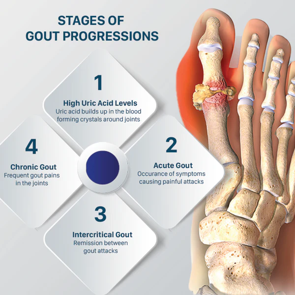 It's important to note that without proper gout treatment, these attacks can recur more frequently and affect multiple joints over time, leading to chronic arthritis and potential joint damage. Early diagnosis and consistent management are critical.