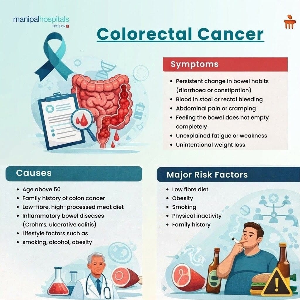 Digestive health changes can sometimes be subtle, yet they may signal underlying issues that require attention. Recognising the early symptoms of colorectal cancer, understanding what is colorectal cancer, and learning about common colorectal cancer causes can help individuals seek medical care at the right time. Fortunately, advances in screening, diagnosis, and colorectal cancer treatment have made this condition far more manageable when detected early. If you notice unusual or persistent digestive changes, Consult with the best cancer care hospital in Hebbal, Bangalore is the safest step toward protecting your health.