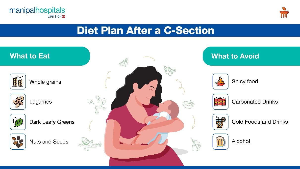 If you have undergone a C-section delivery, incorporate a variety of whole grains, lean proteins, and colourful fruits and vegetables into your diet. Focus on foods rich in iron, calcium, and vitamins C and D. Don't consume spicy, fried, or heavily processed foods that may cause digestive discomfort. Limit your intake of carbonated drinks and be cautious with cold foods and beverages. Moreover, always consult your healthcare provider before making significant changes to your diet, especially if you're breastfeeding. Visit the Obstetrics and Gynaecology Department at Manipal Hospitals Jayanagar to learn about the best diet plans after a C-section.