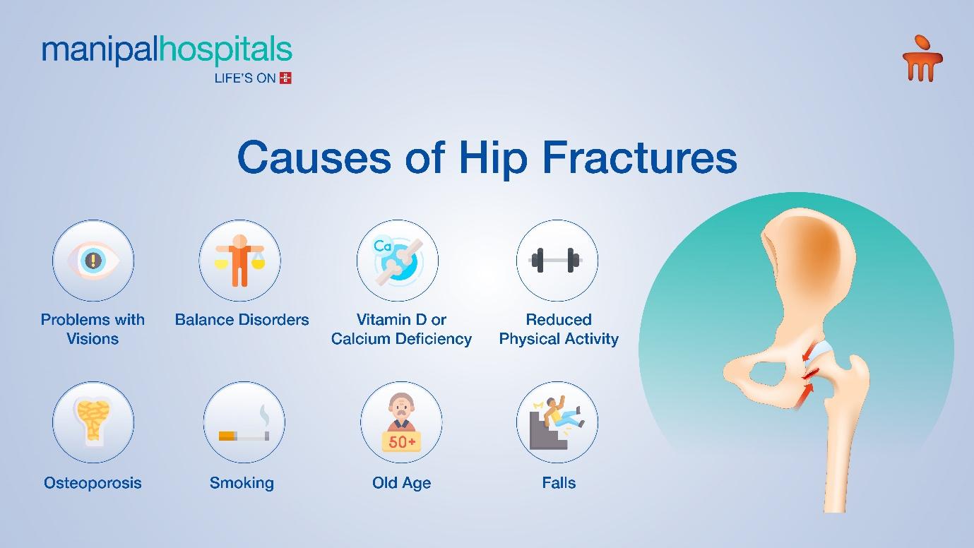 Old age and falls are primary causes of hip fractures and these fractures are more common in women. However other factors that can put a person at risk for hip fractures include: