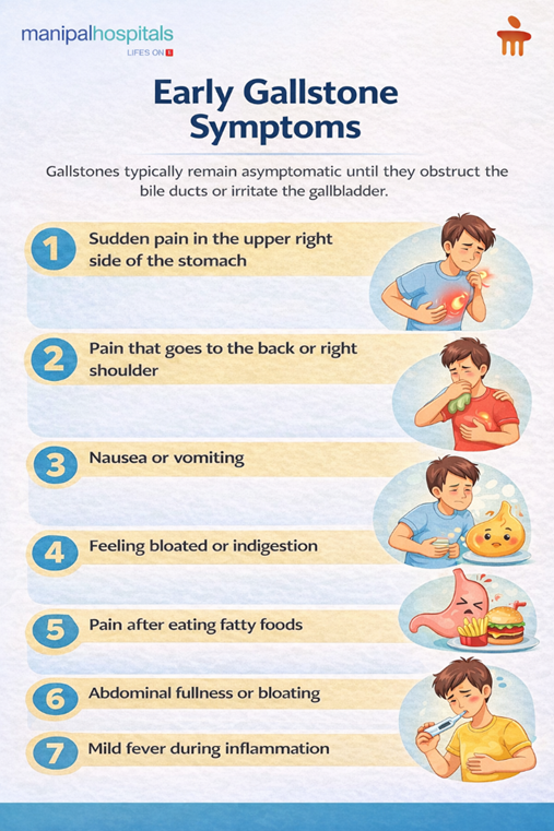 Gallstones are a common digestive disorder that may remain undetected for years before symptoms manifest. Understanding gallstones, their causes, and treatment is key to the right gallstone treatment. Early recognition of gallstone symptoms can help prevent complications. Individuals experiencing recurrent abdominal pain or digestive disturbances should seek medical consultation at Manipal Hospitals, Millers Road. Our gallstones treatment in Millers Road, Bangalore, includes comprehensive care for gallstones, including diagnosis, pharmacological management, and minimally invasive gallstone surgery, to facilitate rapid recovery and return to daily activities.