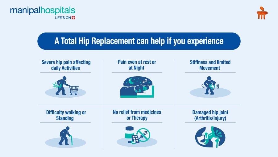 The decision for total hip replacement surgery is taken in consultation with your orthopaedic specialist when non-surgical treatments have failed, and hip pain significantly interferes with your daily life. These signs indicate that Total Hip Replacement (THR) may be the most effective next step for long-term relief and improved mobility: