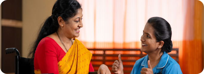 Short term Nursing care "Manipal Hospitals offers a comprehensive care package for quick recovery post-discharge. Get care and support in the comfort of your home even if you require it for a short period of time. Our expert team of nurses will provide IV Infusions- Intravenous (IV) therapies for improving blood volume. IInjections- Intramuscular, intradermal, and subcutaneous based on your doctor’s advice. Bladder Wash- Cleaning the bladder using solutions to prevent infections. Catheterisation- Inserting a urinary catheter to relieve symptoms of urinary retention and spinal cord injuries. Chemotherapy- Chemotherapy treatment protocols include inserting a catheter, port, or pump into a large vein and administering medicines. Colostomy Care/ Bag Change: Dressing and changing the colostomy pouch. Drain Care- Cleaning and dressing the drain at the surgical site in a postoperative patient. Wound Dressing- Cleaning and dressing the wounds to prevent infections and promote faster healing. ECG (without interpretation)- ECG monitoring helps record electrical signals in your heart and detect heart problems. Enema- Injecting fluid into your lower bowel via the rectum to promote stool evacuation. Ryle’s Tube- Cleaning and changing the Ryle’s tube. Insert a new tube whenever required. Staple / Suture Removal- Dressing and cleaning of post-surgical scar or wound. Removing the staple or the suture gently to avoid infection and hasten to heal. General Vitals- Routine monitoring of vitals like body temperature, pulse rate, respiration rate, and blood pressure. Long-term Nursing care "For a more chronic illness or a critical injury, you may require round-the-clock monitoring. Manipal brings to you 24-hours stay-at-home nursing care. Our expert team of nurses will provide Ryle’s tube feed- Feeding the patient using a nasogastric tube when he/she cannot swallow or eat properly. Tracheostomy Care- Cleaning and dressing of the tracheostomy tube to prevent infections. Injections- Intravenous, intramuscular, or subcutaneous. Wound Care Dressing- Non-healing wounds will be cleaned and dressed by experts who are specialized in different types of the wound dressing. Basic Nursing Care- Complete expert care to make you feel relaxed and get better soon. Stoma, PICC Line, Chemo Port Care- Special care and attention to cancer patients for their cancer therapy protocol. Critical Care Nursing- Comprehensive ICU-like facilities for patients who require intensive care on a long-term basis. Catheter Care- Inserting a urinary catheter and cleaning and emptying the urine bag. Vital Monitoring- Patients who need continuous monitoring of body temperature, pulse rate, respiration rate, and blood pressure. Nebulisation: Patients with respiratory tract conditions require frequent nebulisation. Oxygen Administration- Oxygen therapy for patients with increased metabolic demand and lung illnesses. Standard Precaution & Infection Control- Prevent the transmission of diseases and infections via contact with blood, body fluids, mucous membranes, etc. with these standard care protocols.