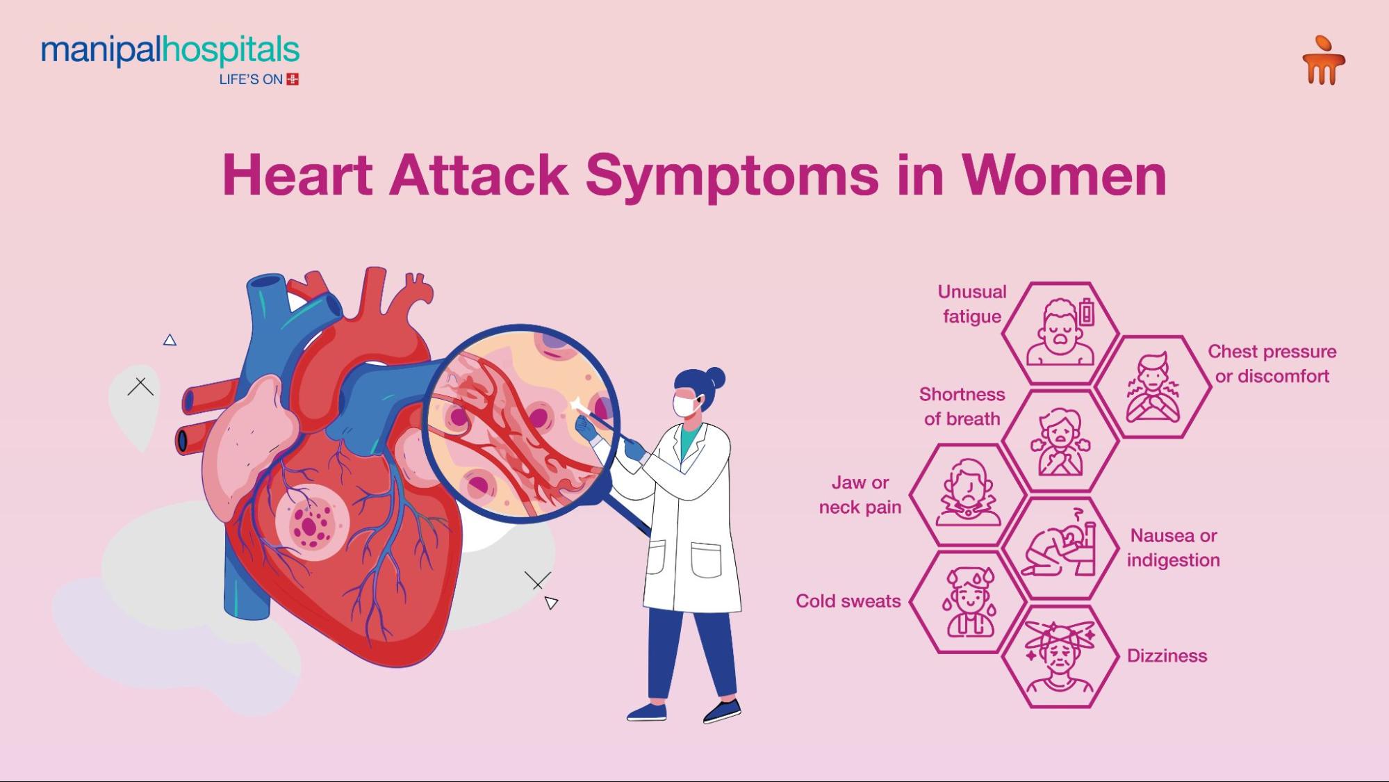 A heart attack in women often presents with symptoms that are different from those seen in men. Signs such as fatigue, nausea, breathlessness, jaw pain, or dizziness should never be ignored.