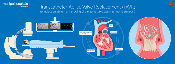 Transcatheter Aortic Valve Implantation (TAVI). The aortic valve controls the blood flow from your heart to the rest of the organs. TAVI is a minimal invasive procedure to replace your damaged or diseased aortic valve with a new man-made one using a narrow tube called a catheter. This is inserted into a large blood vessel in your groin or chest.