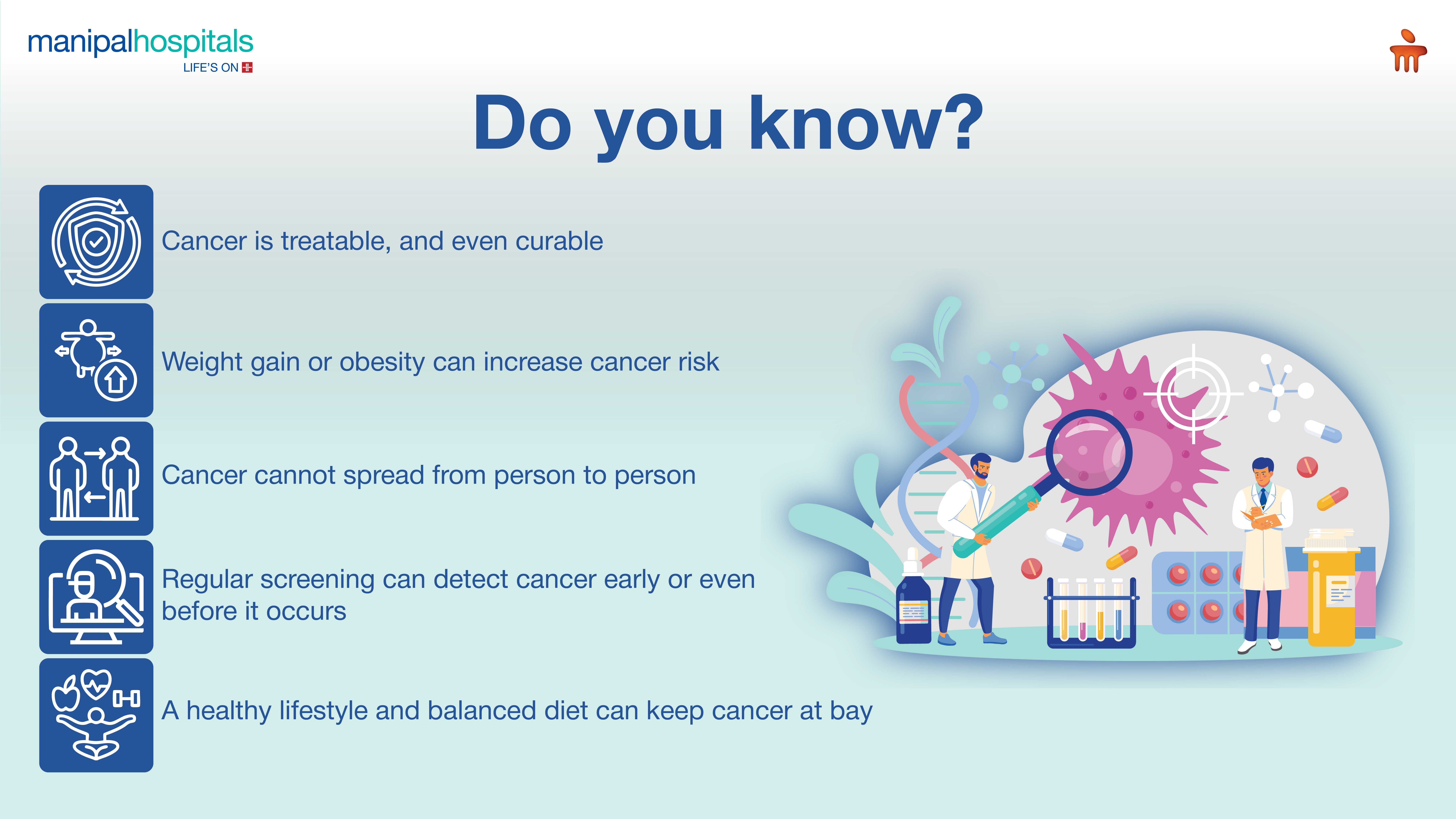 Knowledge is power, especially when it comes to your health. By understanding the truth and dispelling misconceptions about cancer, you can make informed choices that contribute to a better prognosis and a healthier life. If you are experiencing any concerning symptoms or wish to discuss cancer prevention and screening, the dedicated team of oncologists at Manipal Hospitals Rangapani are here to provide comprehensive, compassionate care and the right guidance. At Manipal Hospitals, we believe in empowering our community with accurate facts and reliable information.