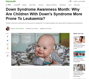 Link: https://www.onlymyhealth.com/down-syndrome-children-prone-to-leukaemia... https://www.onlymyhealth.com/d...