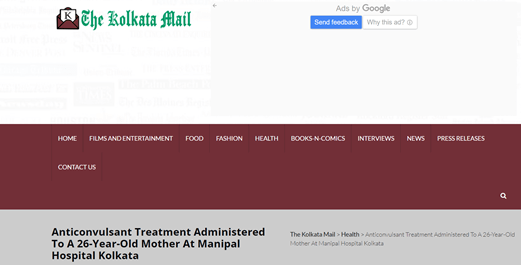 Anticonvulsant Treatment conducted at Manipal Hospital, Salt Lake, Kolkata on a 26 year old woman.