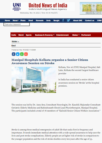Topic - Manipal Hospitals, Kolkata organise a senior citizen awareness session on Stroke