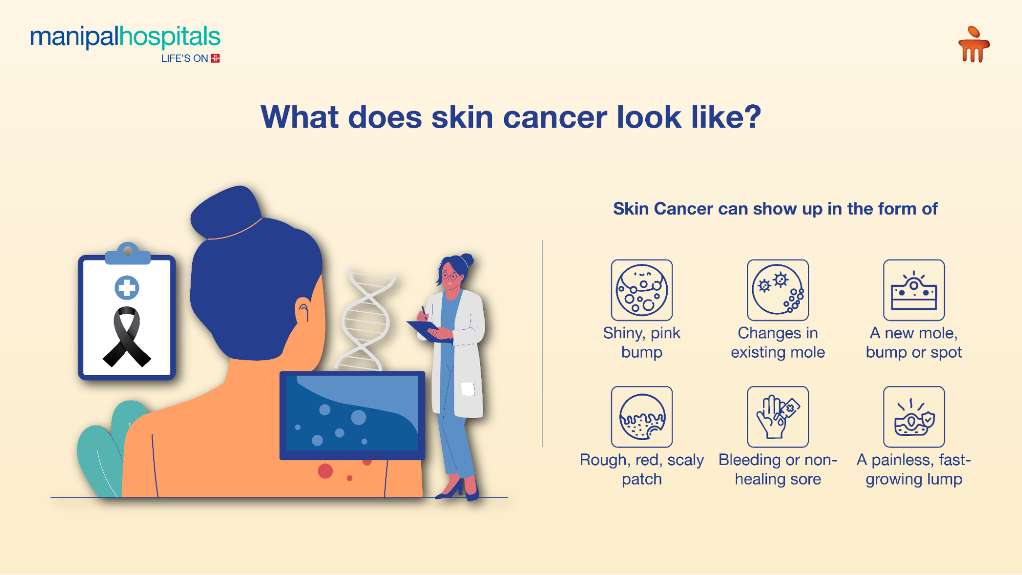 Skin cancer is an uncontrolled, abnormal growth of cells in the outer layer of the skin. This happens when the skin cell DNA is damaged, mainly due to radiation from the sun. Broadly classified as ‘melanoma’ and ‘non-melanoma’ cancers, these cells can invade and destroy healthy body tissues.